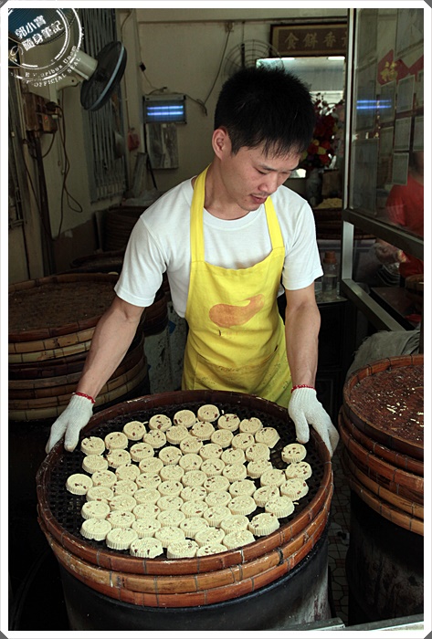 | 看看這剛出爐香噴噴的杏仁餅,真的很讓人崩潰,不買上一大包真的很對不起自己,就算你想買建議要趕緊來排隊搶購,除了杏仁餅以外還有其他古早味的餅食也很可口,反正就是很好吃的古早味啦!! |