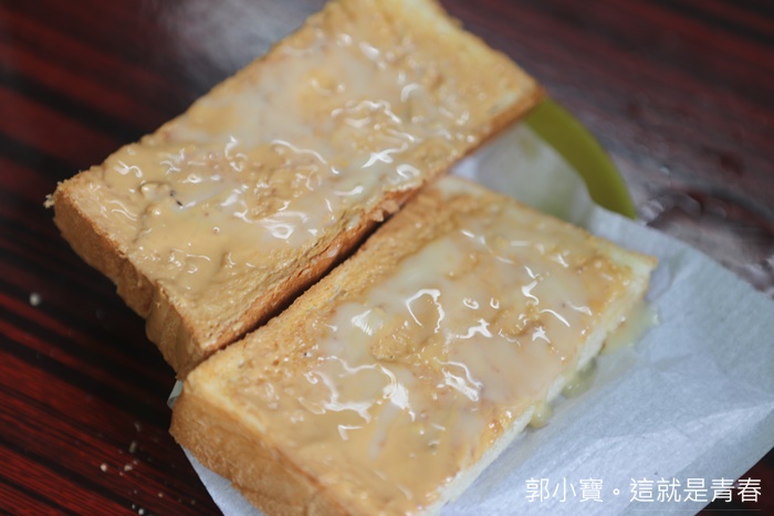 | 既然都來的當然要點個吐司來搭配一下,吐司裡面抹的是花生跟煉乳,這兩樣加起來不好吃也很難,再搭配奶茶就是一頓超美味的早餐或下午茶了, |