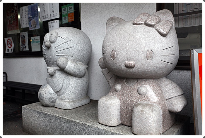 | 入口還有凱蒂貓跟哆啦A夢的石雕,不知道為什麼會有這兩隻,該不會藤子不二雄先生跟三麗鷗的董事長都來光顧過吧!!! |