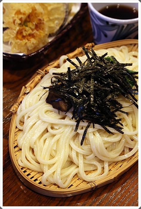 | 冷烏龍麵的麵體又跟溫的完全不一樣了,整體上跟一般的烏龍麵一樣,但是比一般的烏龍麵更細一點,冰鎮過的烏龍麵放入冰醬汁後,一口吸進去簡直太銷魂了,彈牙到一整個爆炸,輕輕用牙齒一咬就斷,咀嚼中那Q嫩的口感真的令人無法自拔,冷烏龍麵才是王道啊!!!!! |