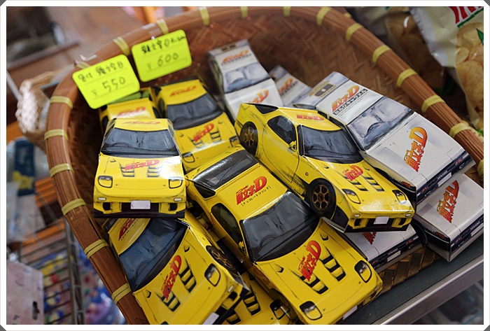 | 店外很多伴手禮都是以投文字D的車子作為外盒,其實這一代的伴手禮不外乎就是以投文字D為主題跟溫泉饅頭。 |