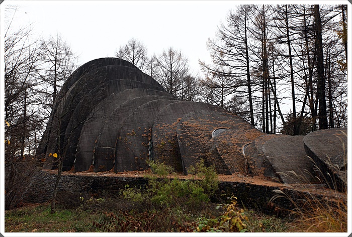 | 石之教堂的正門小小的一個,看起來頗為隱密,但是可能因為落葉太多了,感覺起來有點雜亂的感覺。 |