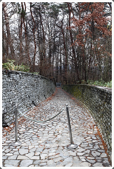 | 進入石之教堂的小路相當的漂亮,用石堆堆起來的通道頗有歐式風情,長長彎曲的道路讓人感覺到幸福呢! |