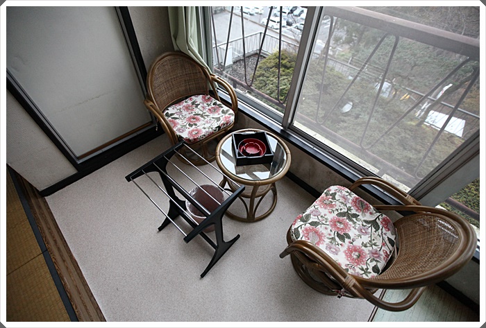 | 拉開拉門外面還有一個小陽台,房間的冷暖氣機相當的強,因為我們去的時候已經是秋冬天氣了,所以算是滿冷的,暖氣可以在很短的時間就整個房間溫暖起來算是還滿厲害的。 |