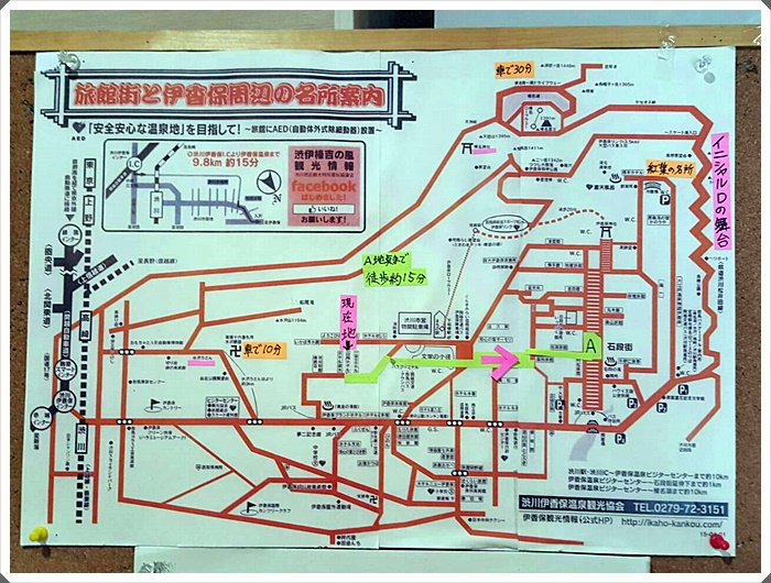 | 旅館內有提供附近的逛街地圖,這一張一定要拿一下,還滿方便的,把伊香保整個地區都畫出來了,餐廳景點通通都有唷! |