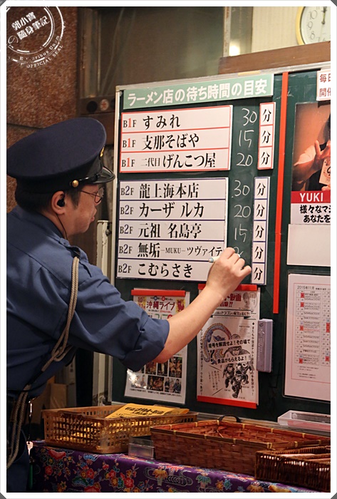 | 底下拉麵店的排隊時間會有警員固定更換填寫時間,就是平均排隊的時間,總共有8家知名拉麵,真的每一家都排了好多人。 |