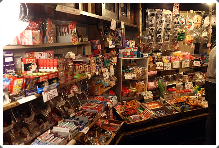 | 偶然經過巷弄的雜貨店還有販售早期的零食,這些零時都是日本人小時候常見的零食,有點像是台灣的懷舊復古零食店,商品琳琅滿目的真的滿想每一種都買一個的。 |