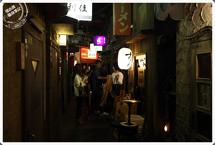 | 到達最底層往上看也相當的壯觀,尤其這四面都有拉麵店,每一家也都排的超長,除了老舊的電影海報招牌以外,這樓房都是西洋式的老樓房,霎那間也有那麼一點台灣的熟悉感,暗黃的小燈泡在每一家的樓層亮了起來,喧騰的吵雜聲跟沉悶的空氣感,真的讓我有一點回到過去小時候的感覺。 |