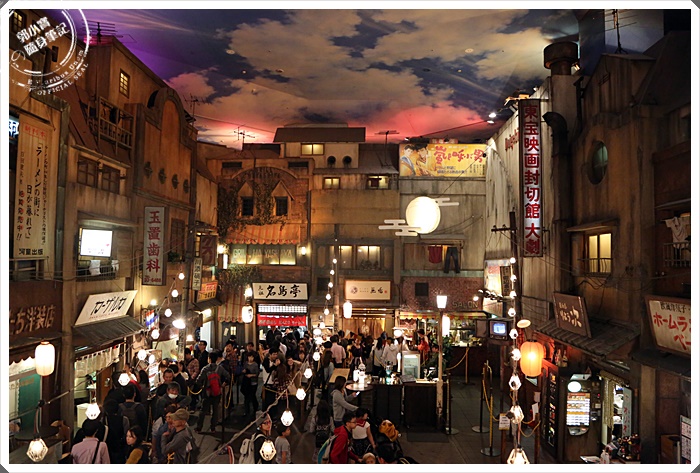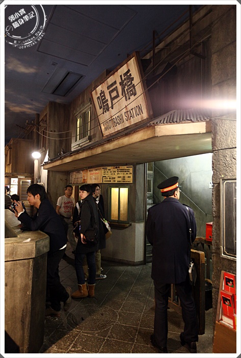 | 2樓這邊還有一個造型車站,還有車掌幫大家服務,這邊聚集的人潮很多,因為這邊可以拍到最底層的街景跟熱鬧情景,連車站都復刻的相當厲害,加上人潮超多,感覺真的回到了昭和時期的鬧區呢! |