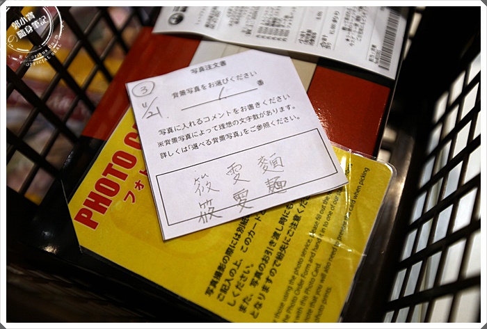 | 最重要的就是麵盒上面要印上甚麼名子,可以印自己的名子或是亂取一通,但是盡量是日本人看的懂的漢字,不用多久可以拿到專屬你的拉麵盒了,是可以帶回家做紀念的,重點肚子餓的時候是可以拆起來食用的。 |