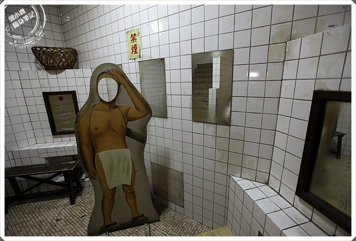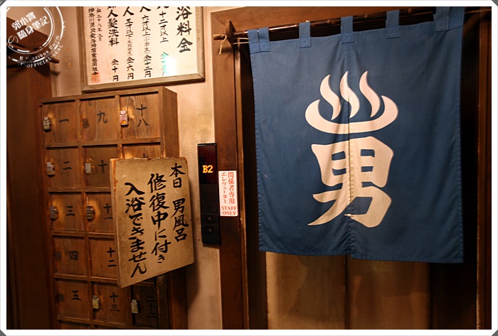 | 沿著樓梯走下來就有感覺復古的氣氛飄散出來,半樓的轉角間布置成日本早期浴室的感覺。 |