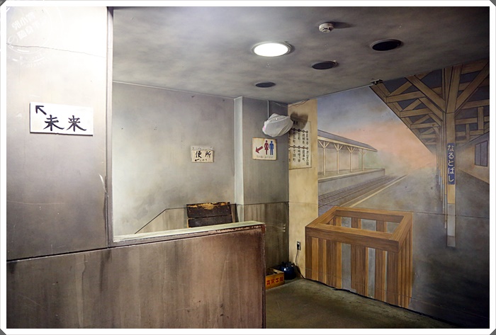 | 樓梯間寫著通往一樓就是未來,就是現在的世界啦,現在這邊開始就是昭和時期的世界了。 |