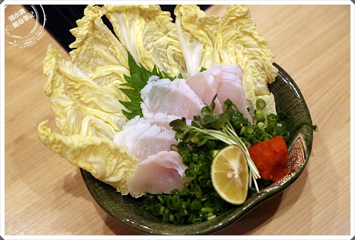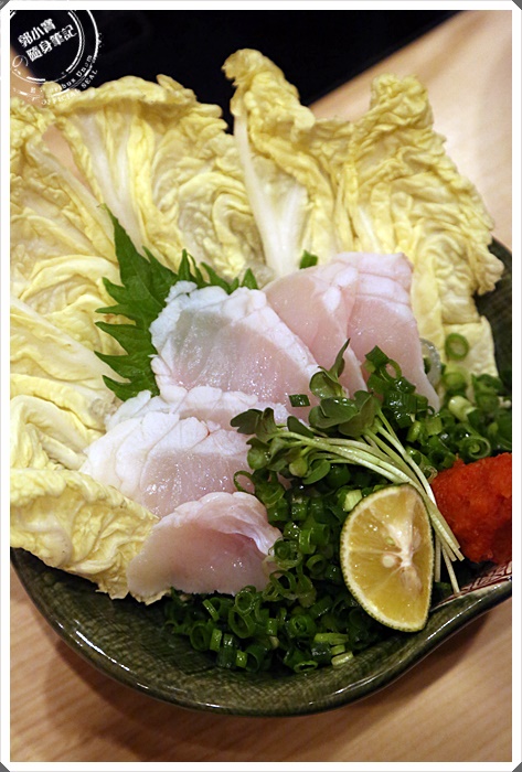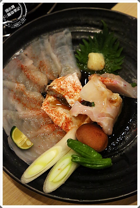 | 這一份不含在套餐裡面,要另外點的,厚河豚肉是要給人涮鍋使用的,大概涮到半熟就可以起鍋了,但是一開始就送這個來真的很無言,因為鍋是最後才上,我不懂那麼早送上來幹嘛,涮了一下吃起來還不錯。 |