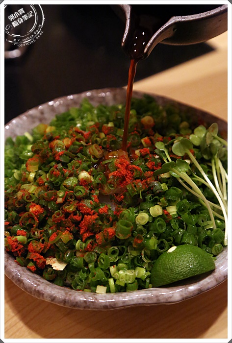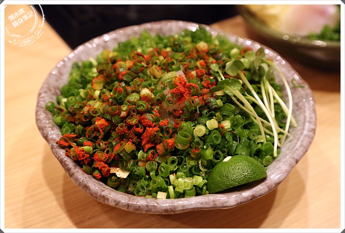 | 一整碗全部被蔥蓋到不見蹤影,上面還撒了辣粉的樣子。 |