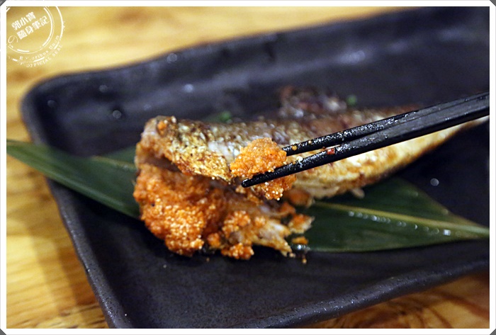 | 沙丁魚內塞滿明太子,這倒是第一次吃到,還滿特別的,沙丁魚肉本身就夠厚,配著滿滿的明太子一起入口,口感也是非常豐富。魚卵在嘴裡跳動夾雜著豐沛的魚汁,真的很好吃! |
