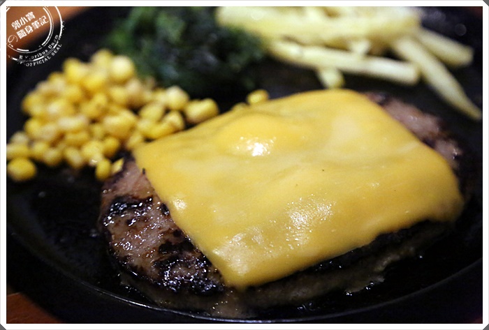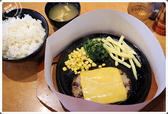 黃澄澄的起司看起來真的很誘人,口水快流了一地了,還搭配一大碗白飯,所以男生也可以吃的很飽絕對沒有問題,漢堡肉吃起來其實還滿普通的,但是這個價位其實很平價了。