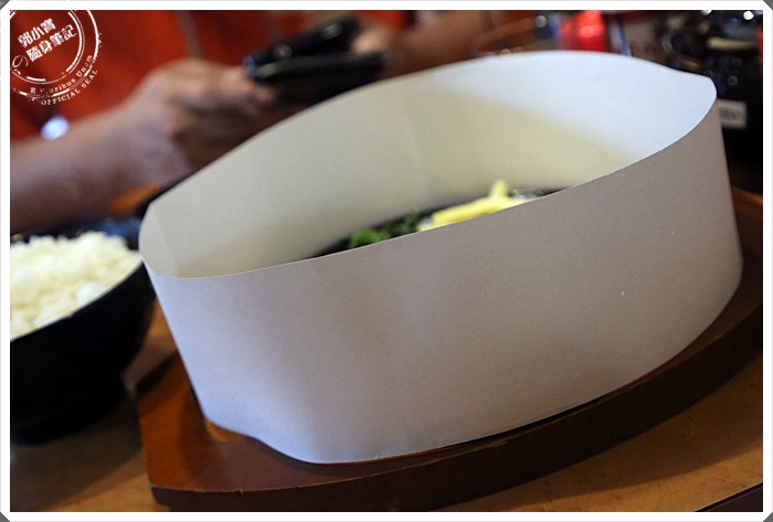 | 第一次看到感覺像拉麵店的店舖裡面還有賣漢堡排套餐的,而且價位830日幣感覺還滿便宜的,上桌的時候還用紙板圍住,避免噴油到客人的身上,相當的貼心。 |