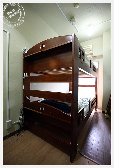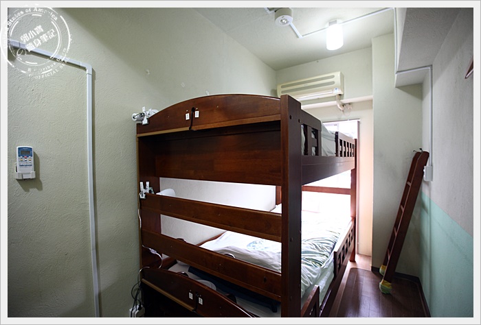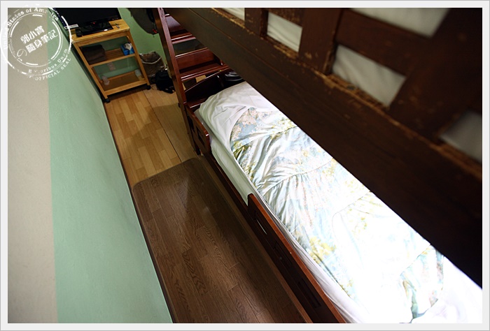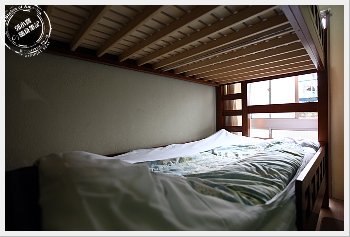 | 床鋪的部分是上下舖兩張床,雖然是單人床但是還滿大的,最底端是窗戶,這邊的窗戶記得不要打開,這附近貓很多,我們進門的時候其實窗戶沒有關,可能是旅館老闆為了通風,但是在我們的床上卻發現一隻貓在這邊休息,其實貓咪很可愛啦!! |