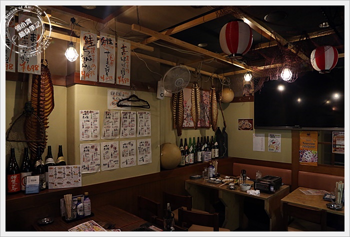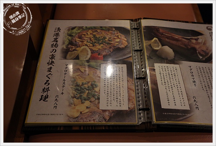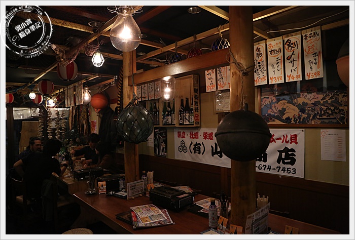 店內裝潢頗有漁村風,店內的照明有點昏暗,客人還挺多的,但是跟磯丸水產比起來就顯得落寞許多,唯一值得一提就是店內的員工超熱情的,噓寒問暖而且很努力要跟我們溝通根介紹,很可愛。