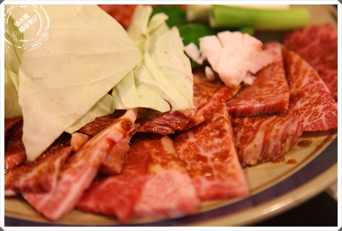 一盤的份量就是沙朗跟五花各兩份裝成一盤,這樣一盤大概也要5000日幣,說貴不貴說便宜也不能算太便宜,不過看起來還滿漂亮的。 |