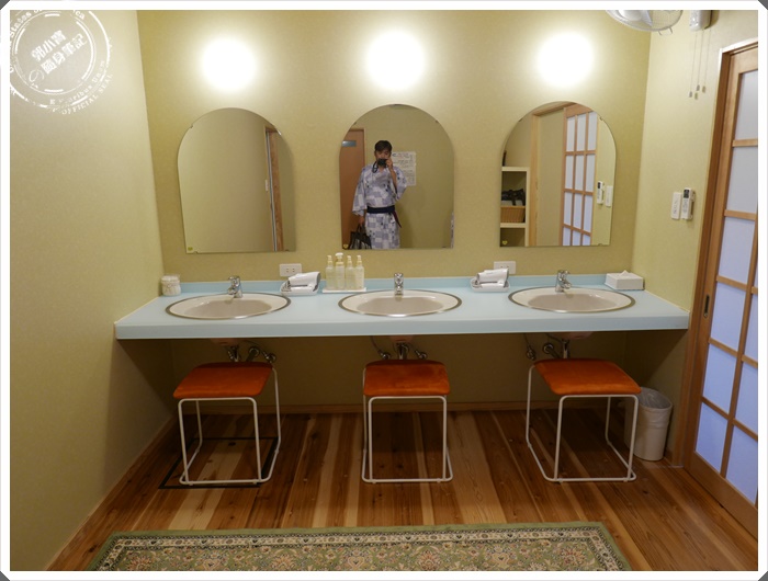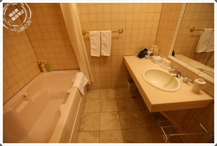 | 廁所相當的大奸,連化妝檯都很大,對兩個人一起刷牙洗臉非常的方便,浴缸也非常大,水龍頭打開就是溫泉水,如果不想去大眾池泡溫泉,那在房間也可以享受大浴池。 |