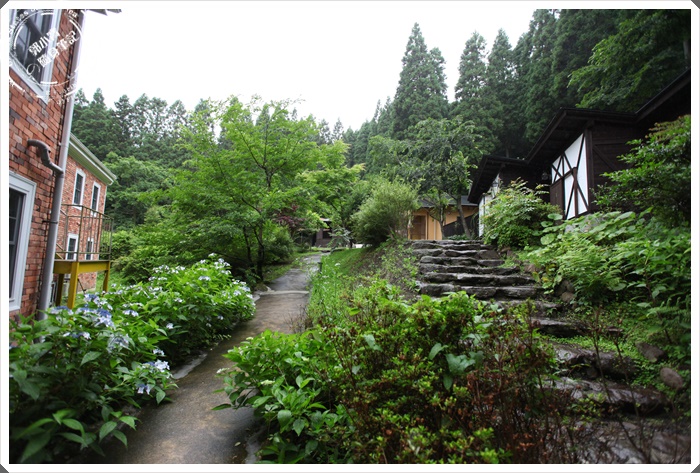 旁邊的庭院也超美的,因為下午時分加上當天細雨綿綿,所以沒辦法再庭院裡喝杯咖啡享受這黃昏美景真的還滿可惜的,不然這邊一整個就是蜜月旅行的最佳去處,騎騎腳踏車逛逛湯布院,一整個放鬆到不行的行程。