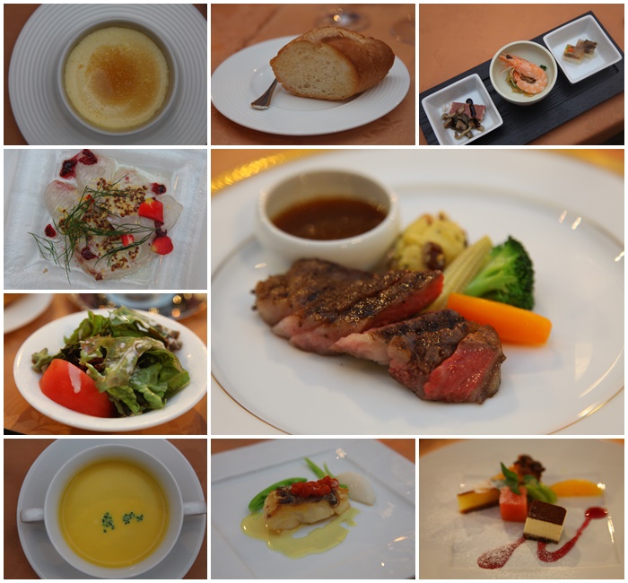 | 晚餐是西式料理,看起來好像每一種分量都不多,但是吃完一整個就是飽到天靈蓋了,魚肉跟牛肉都很新鮮又甜口,蒸蛋口感非常的特別。 |