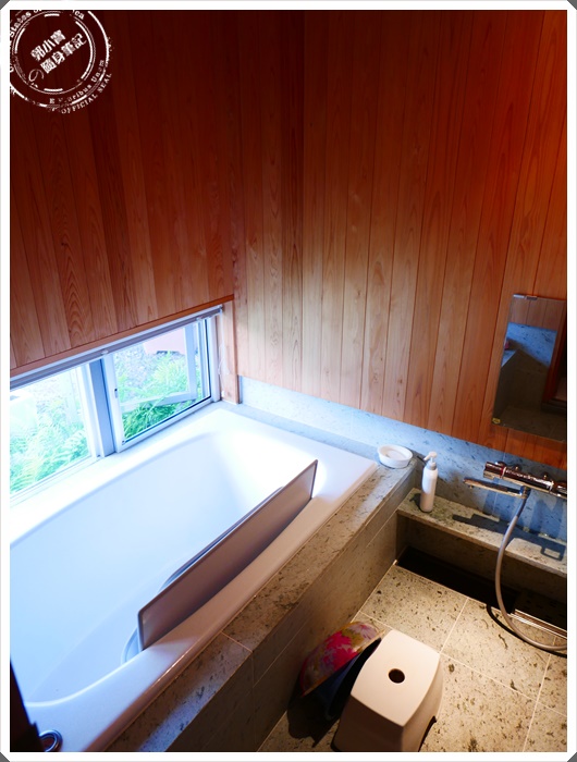 | 浴室是有觀景窗,老爺爺還一直跟我們說沒有人會偷看你們的別擔心,其實我們一點都不會擔心阿,後來我們也沒使用到這個浴室,因為一直盧老爺爺帶我們去泡溫泉,哈哈 |