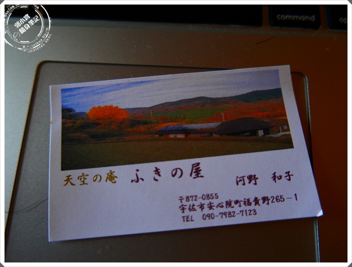 | 我們住的天空の庵ふきの屋算是這一題路上的最上端了,所以相當的偏僻,不過我個人真心的喜歡這邊的農兼民宿,不只是身心靈都獲得放鬆,這樣的兩天一夜也讓我充滿了滿滿的感動,天空の庵ふきの屋是這一對老夫妻的兒子親手打造的,從設計到施工都是出自於兒子之手,這附近農民幾乎都是退休後熱於農忙生活,每當有客人來訪都很開心,有人來陪老人家聊天是他們最開心的事情,雖然語言不通,但是比手畫腳也得到相當大的快樂。 |