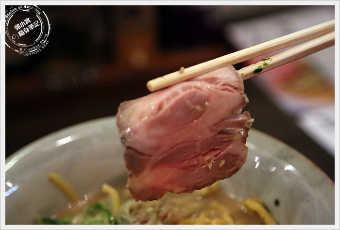 | 叉燒也滿特別的,似乎沒有先醃滷過,但是風味確實不賴,入口的感覺倒是有點像是牛排的錯覺,保留了大部分豬肉的原味,不管是湯、麵、叉燒都很有個人的特色。 |