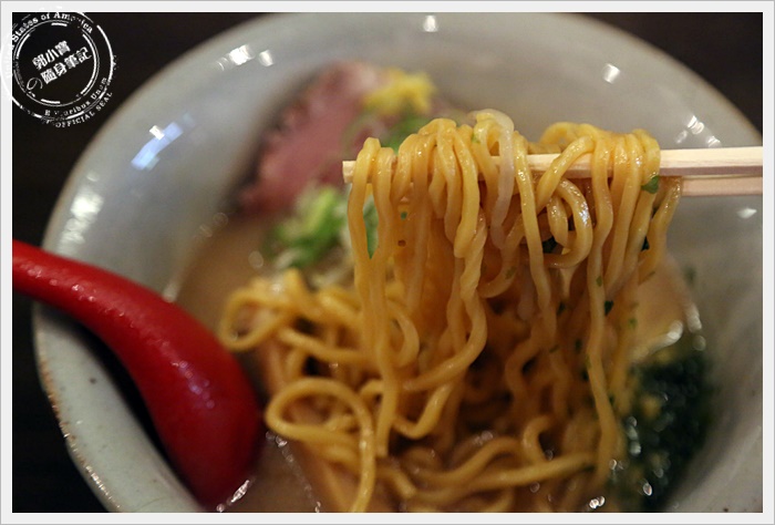 | 麵條是屬於太麵,但是吃起來頗為讓我驚喜,通常這樣粗度的太麵會嚼到雙頰發酸,但是大河麵屋的太麵卻沒有那麼有嚼勁,但是也不會太軟,說真的我還滿喜歡它們的麵條的,相當不錯。 |