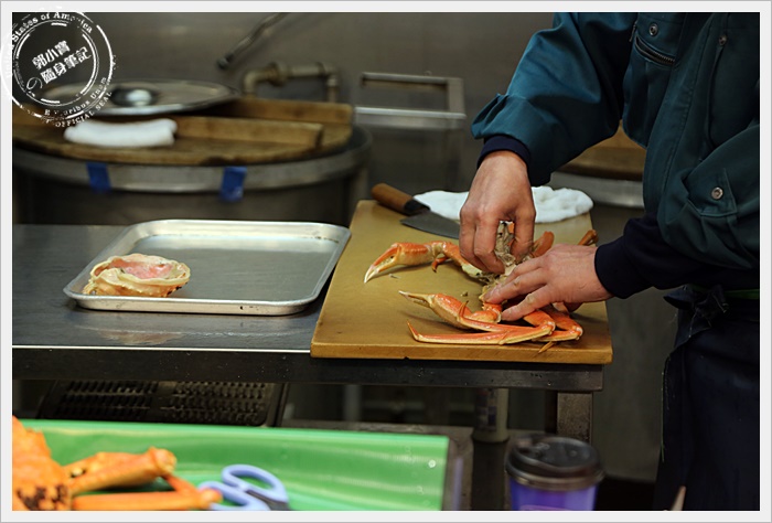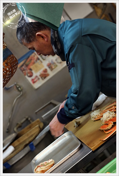 | 把挑好的螃蟹交給師傅並付完帳後,師傅就會幫你稍微的加熱然後分切,完全處理好再拿到你的面前。 |