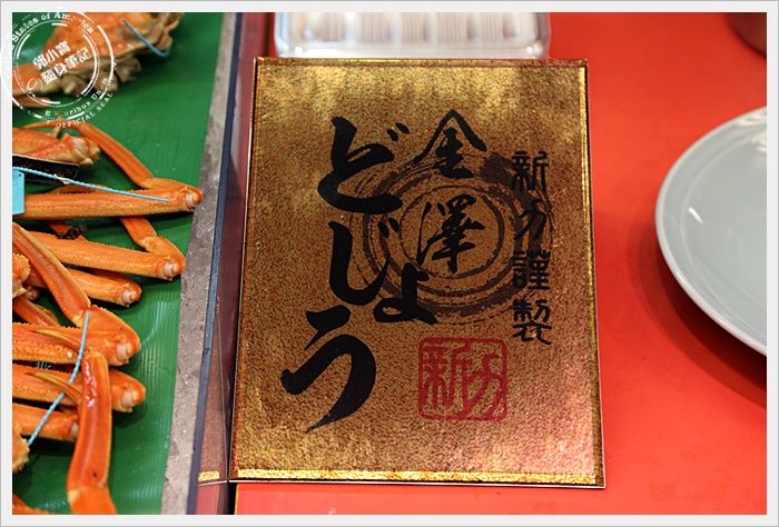 | 旁邊的金箔厚紙板看起來好像很華麗的感覺,不過要現場品嘗這松葉蟹只能站著吃,現場沒有座位跟椅子。 |