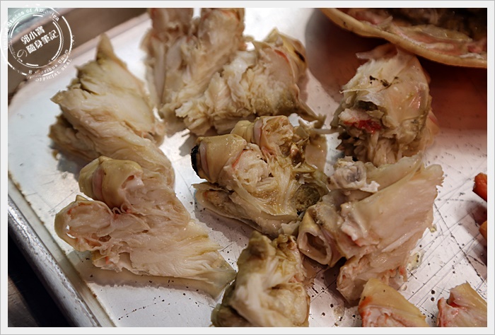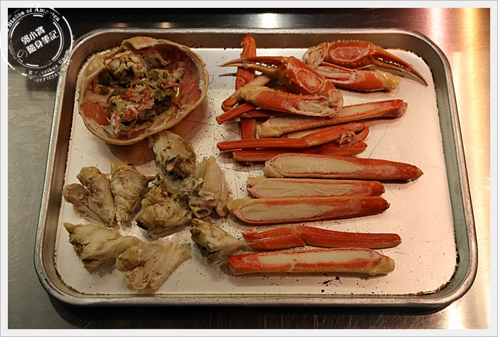 | 處理好的螃蟹是放在鐵盤上,老師傅會把螃蟹通通都撥開,大類全部都放好集中方便客人食用,還滿貼心的,蟹管肉都可以輕易的食用到,稍微燒烤過的松葉蟹管真的太美味了,吃起來雖然不是熱呼呼的,但是一入口那口感加上鮮美的味道,真的讓人無法自拔,加上蟹黃的甜味,一口一口吃個不停,真的真的太美味了。 |