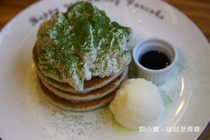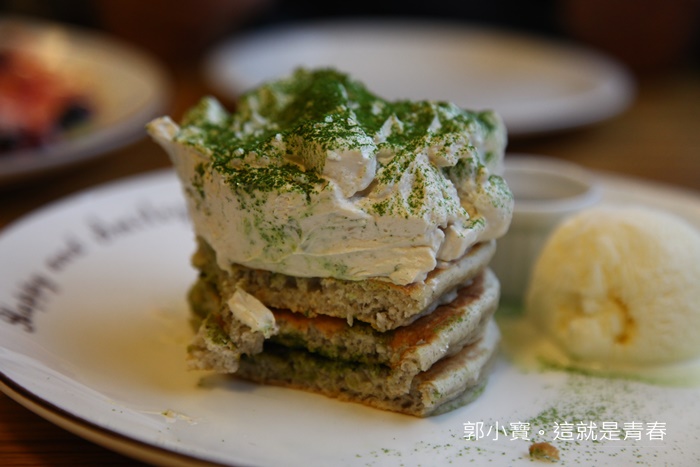 | 喜歡鮮奶油的朋友千萬別錯過這一套鬆餅,三層鬆餅上面擠滿了厚厚的鮮奶油,撒上豪邁的抹茶粉真的看起來就非常誘人。 |
