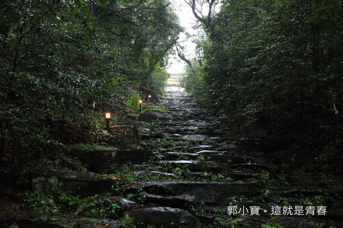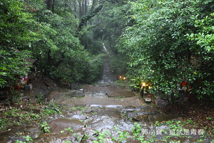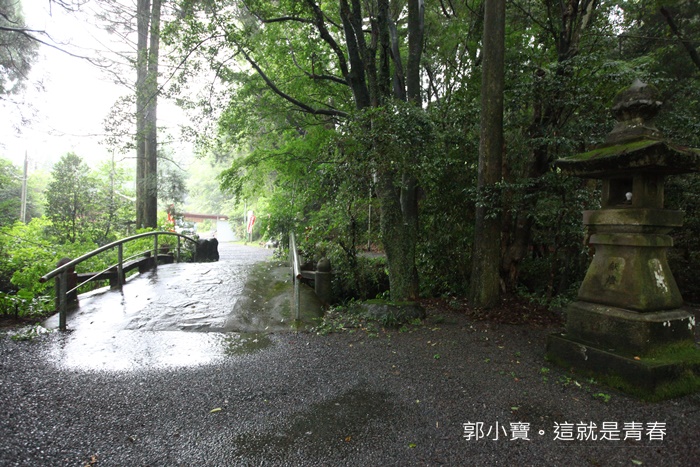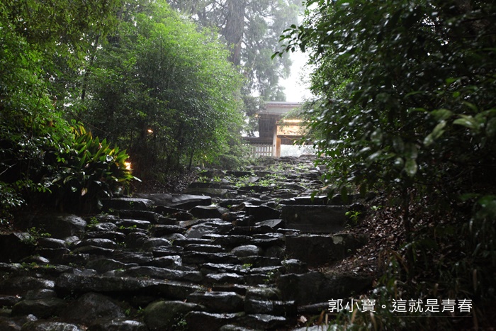 在大雨中的東霧島神社的石階真的超滑的,但是我個人還是覺得都已經來一趟了,不上來參拜一下怎麼可以,老實說要爬上來還真的需要一點體力,尤其在下雨天的石階真的很滑,下山的時候我還滑倒,幾乎痛到一個不行。