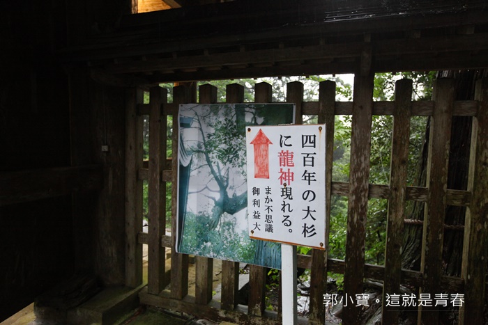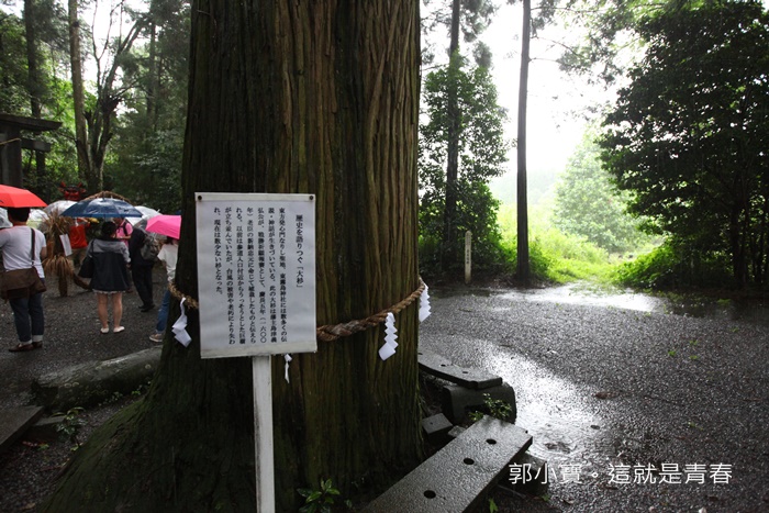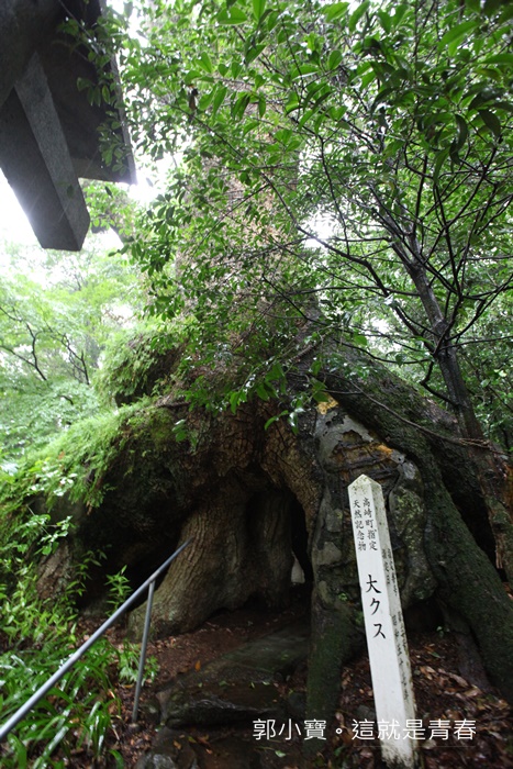 | 鳥居旁邊的上千年老樹,樹中間還有一個可以讓人進出的小洞,據說穿越過去可以帶來幸福,這真的還滿壯觀的,可以長成這樣的巨木不知道需要多久的時間才可以形成。 |