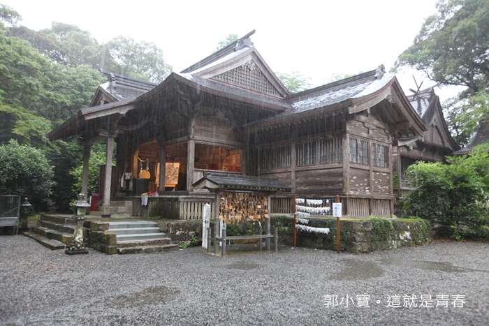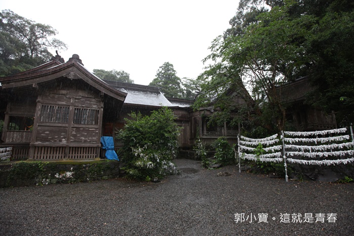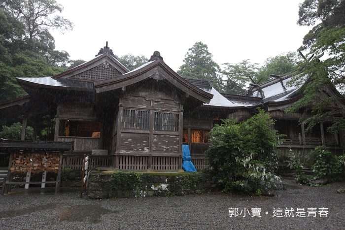 | 東霧島神社本身就是木頭建築,看起來年代真的頗為久遠,好有感覺的一間神社,帶著一點神祕感,因為大雨的關係所以更增添她的朦朧美感。 |