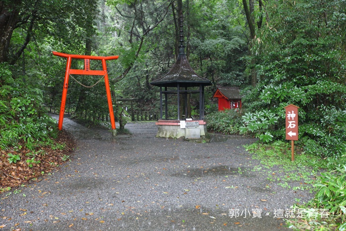 | 東霧島神社的神蹟還滿多的,我超喜歡這一座在森林裡面的神社,沿著路標走過了虹橋就可以看到三個指引標。 |