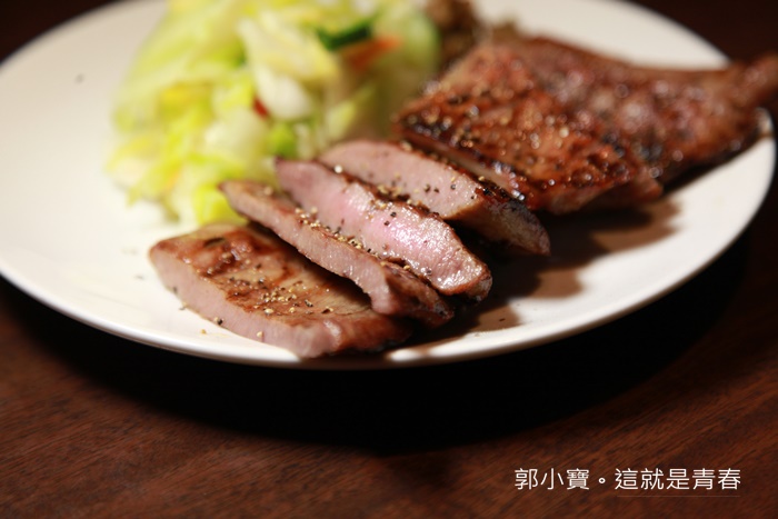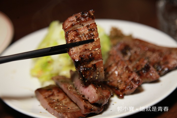 | 一上桌我就覺得這一家一定不賴,光看他牛舌內層還帶點粉紅的嫩度就讓人口水直流,烤出來的香氣卻是香味撲鼻,整整給了8片之多,如果只是單純想享受牛舌美味的人還是建議單點牛舌,這樣可以吃滿多家的。 |