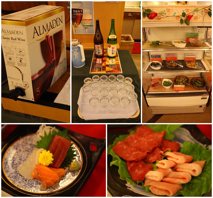| 晚餐的部分是搭配型的晚餐,也就是一人都有一份生魚片根牛肉等特殊高級料理搭配自助餐檯吃到飽,所以真的很划算,當天因為我們太晚到了,所以自助餐有些食物已經收起來了,但是飯店還是幫我們保留了很多,真的很感謝它們。 |