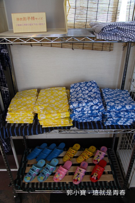 | 飯店浴衣的花色還滿多的,可以挑選自己喜歡的顏色,還有卡通拖鞋,感覺有針對小朋友下過一點功夫,小朋友的浴衣顏色比較活潑。 |