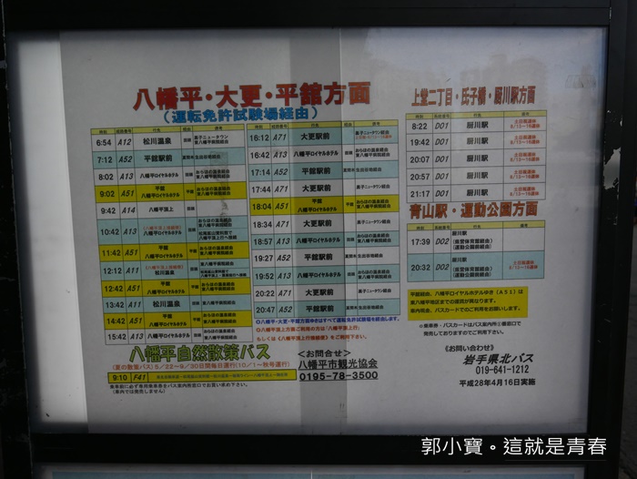 第一次來岩手縣挑戰了很多地方,短短幾天我幾乎快跑遍了岩手縣,這次還訂了岩手縣的溫泉勝地八幡平的溫泉旅館,從盛岡車站出來後可以選擇搭公車即可到達,盛岡車站北口3號招牌的車子就會開往這次的溫泉飯店,飯店也有提供接駁車,但是要三天前預約,如果不懂日文的話,可以提早發EMALL跟飯店聯絡,飯店裡面有人懂中文,搭公車需要將近80分鐘的車程。