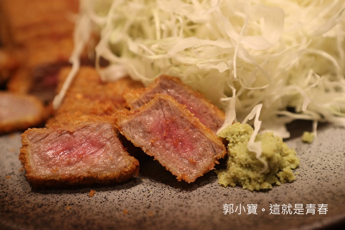 | 同樣是朋友點的黑毛和牛的炸牛排,也是勝牛裡面等級最高的炸牛排,看起來就讓人口水直流,但是外表真的感受不大,趕緊跟朋友要了一塊來試試看。 |