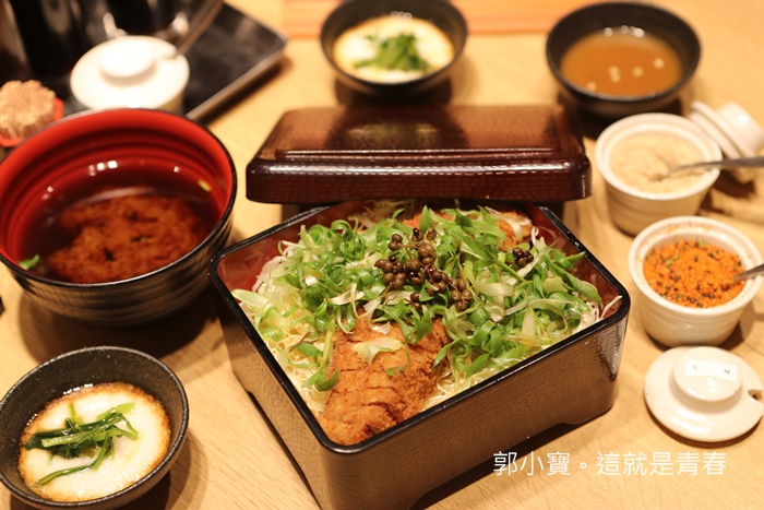 | 這個勝重就是我點的了,我個人對日本這類型的方形便當有著無比的喜愛,這個勝重看起還很豪華,但是相對其實一點都不貴,搞不好還是這幾個套餐裡面最便宜的,少了生菜切絲以外,其他的大部分也都是有付,山藥泥是跟友人借來拍的。 |