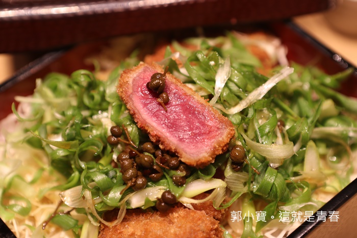 | 炸牛排的上面放上了鮮甜的大根泥再搭配山藥泥是女性群的最愛,京都勝牛的炸牛排切的厚度薄了一點,對於女性朋友來說也比較好入口,大口地吃進炸牛排跟大根泥口感好清爽,大根水分多且甜,搭配酥脆的麵衣還有菲力口感的牛肉,給人的第一個感覺還滿驚艷的,同行的女性友人點的這一份也不錯。 |