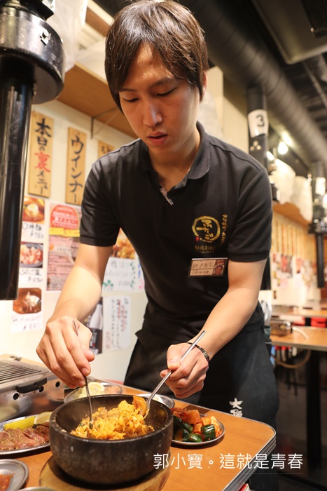 | 熱呼呼的拌飯上來同樣也是店員來幫忙服務,一邊翻動一邊就傳來了陣陣的香氣。 |