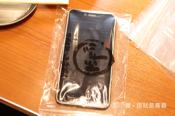 | 日本店還有提供貼心的手機塑膠套,這樣就可以防止被醬料或是肉汁噴到,雖然隔著塑膠套,但是划手機還是完全沒有問題的XD |