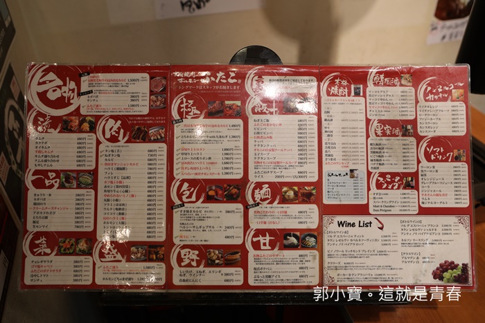 | 日本大阪雙子燒肉的菜單,幾乎都是日文字,不過現在大部分的日本餐廳都有中文的服務人員,這邊也有幾個員工是會說中文的,所以看不懂的話可以直接詢問。 |