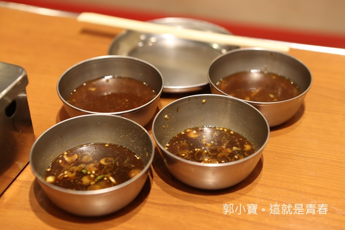 | 日本雙子燒肉的醬汁頗為特別,台灣就沒有提供醬汁,個人其實幾乎沒有再沾醬汁,喜歡用鹽提味,但是日本的燒肉似乎每一家獨特的醬汁才是重點。 |